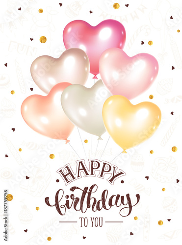 Happy Birthday Greetng Card With Colorful Balloons Isolated On White Background Festive Design With Decorative Lettering For Birthday Invitations Banners Romantic Balloons In Heart Shape Buy This Stock Vector And Explore